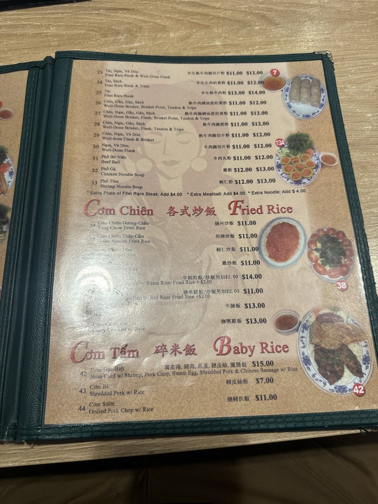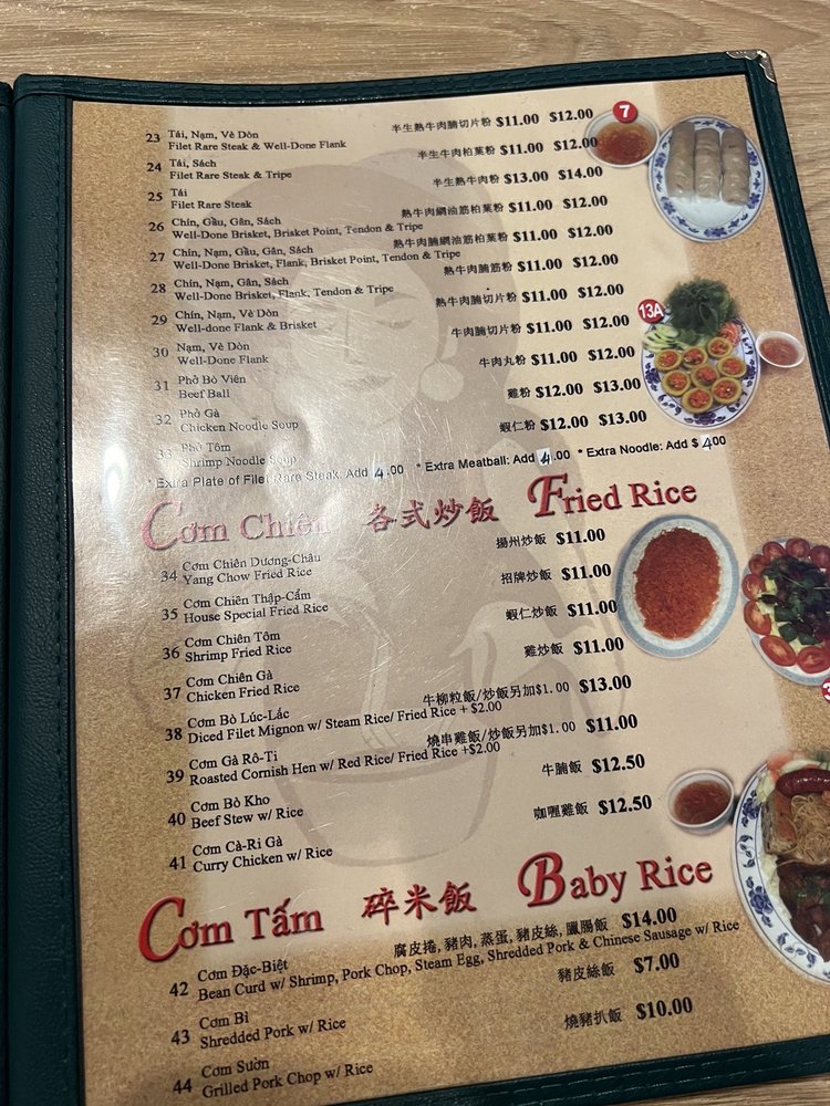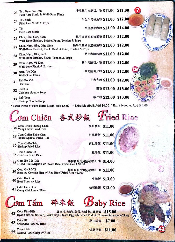 Pho Filet 2, a Vietnamese restaurant in Rosemead, CA, offers a variety of traditional dishes alongside some modern twists. With a bustling atmosphere and friendly staff, this spot is a go-to for many locals. Customers rave about the flavorful pho broth, especially in the Pho Dac Biet with its tender beef cuts and aromatic spices. The dining area is spacious and accommodates both large groups and solo diners. While the menu has limited vegetarian options, meat lovers will appreciate the generous portions and authentic flavors. Overall, Pho Filet 2 delivers a delightful dining experience that captures the essence of Vietnamese cuisine.